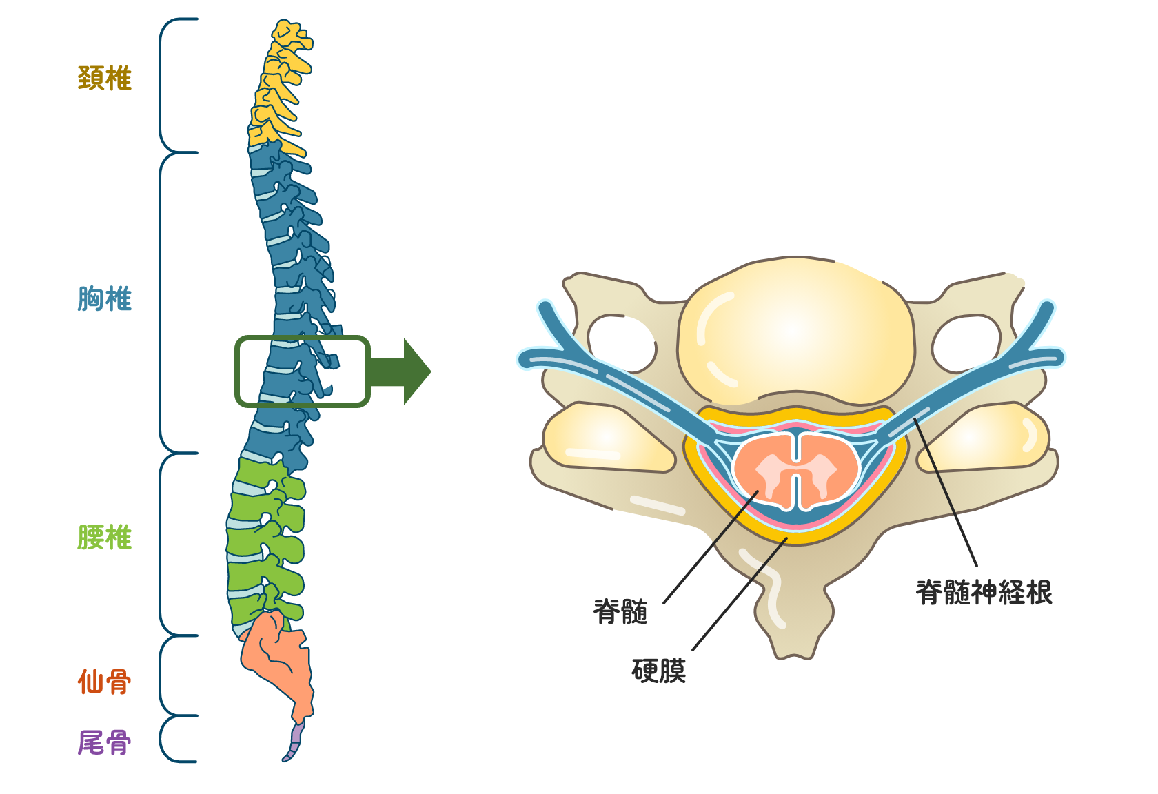 背骨の中には脊髄という中枢神経と血管が通っており、